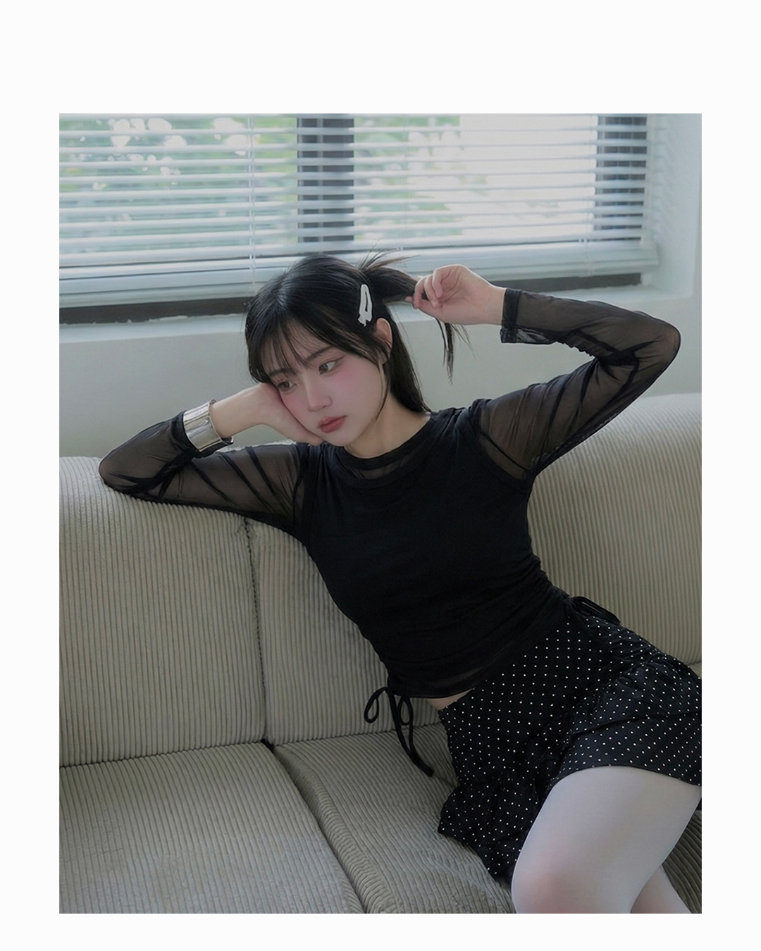 · Side drawstring ties at hem